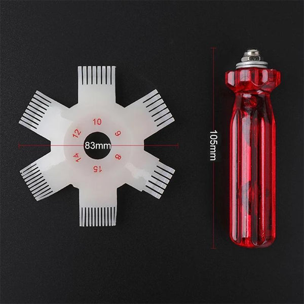 The Air Conditioner Radiator Condenser Fin Comb comes with 6 different fins measurement for your different needs. Match the teeth to the spacing of the fins on your air conditioner, then draw the comb slowly and carefully over the fins.