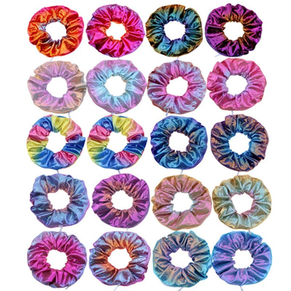 Soft Material: Made of shiny sparkle holographic fabric, good texture touches soft and comfortable, elegant and shiny appearance, the inner rubber band is durable, stretchable and elastic, will not hurt your hair