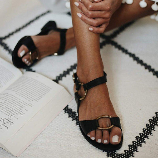 Fashionable: ankle strap, ring decoration, buckle design - the sandals are very modern and graceful.