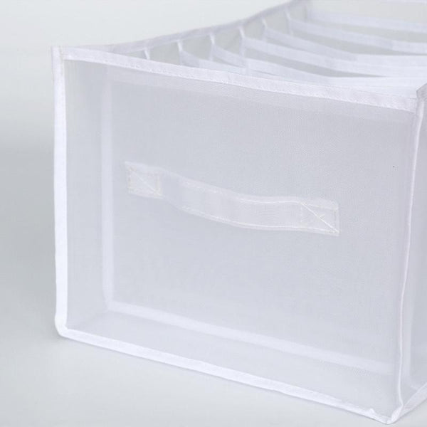 The visible grid storage box is convenient for you to take clothes, saving time and space, which greatly improves the utilization rate of the wardrobe space. It can be used in multiple layers and keeping your wardrobe and drawers neat and orderly.