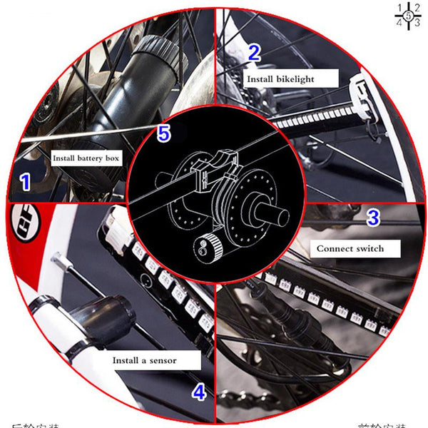 It consists of 128 high visibility RGB LED lights. (Note: this is 1pc pack, if you need installation front and rear wheels, please buy two.)