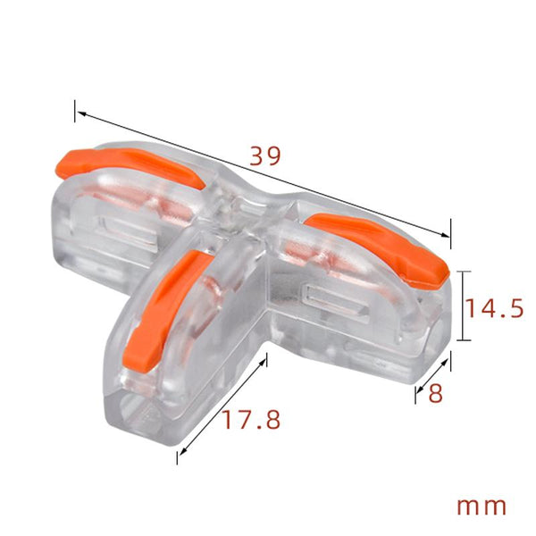 Our Quick Connection Terminal made of insulating materials,Full protection to avoid accidents, it eliminated the cumbersome tasks,it is so simple and easy to use that almost anyone can handle it  Make wiring connection in a fast, secure and reliable way. Widely applicable to braided wires and solid wires of different sizes to meet household or commercial use.