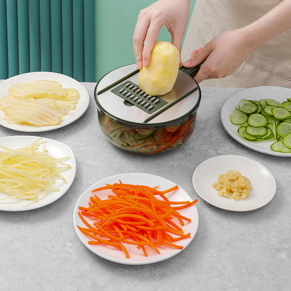 【9 in 1 Multi-functional】Vegetable shredder shredder slicer blade contains 7 replaceable blades for thick/thin slicing, shredding/shredding, spiral/ribbon. Blades easily cut through fruits, peppers, potatoes, tomatoes, onions, garlic, cucumbers, carrots, beets. Cut down on cooking prep time with this kitchen gift cooking gadget.