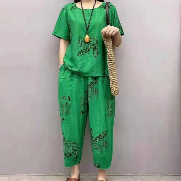 • 【Casual Design】 Women's summer t-shirt set with crew neck and short sleeves. Casual pants with side pockets and elastic waistband. Simple, loose, classic style.