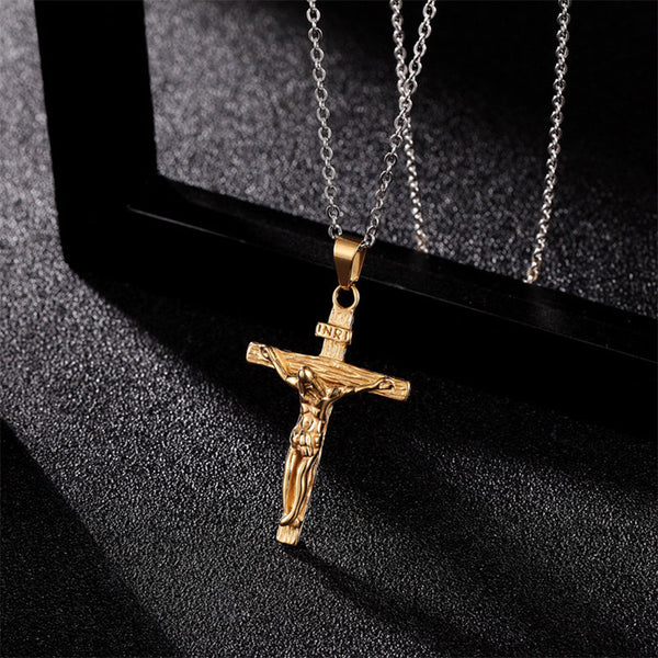 Classic: Wearing a crucifixion necklace is associated with one's beliefs as a Christian or Roman Catholic: it serves as a clear symbol of one of the Christian sacrifices on the cross and eternal hope to win the salvation of men.