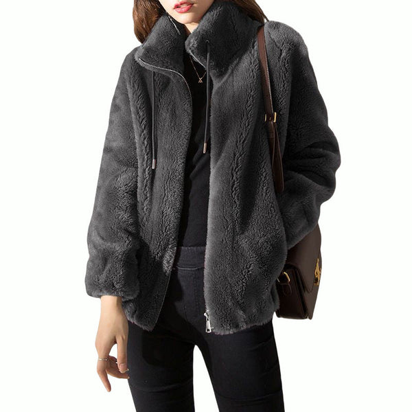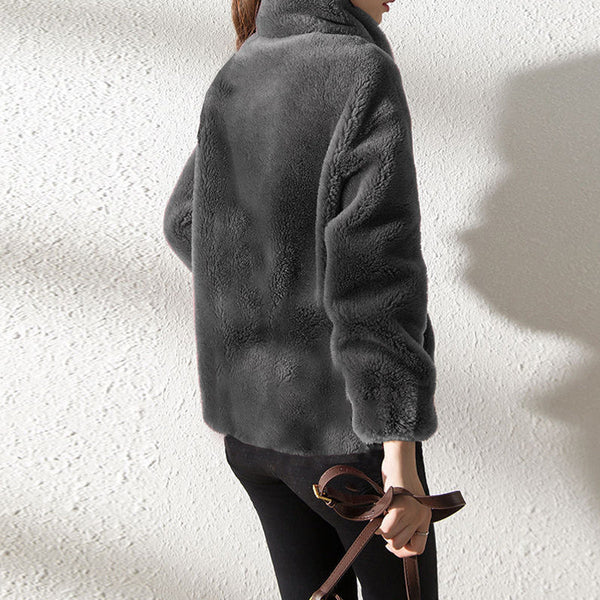 ★Feature★Long Sleeve, Lapel, Two Side Pockets, Boyfriend Style, Double-Side Faux Fur, Elastic Cuff and Hem, Fluffy, Oversized and Cozy Fit Cardigans Jacket.
