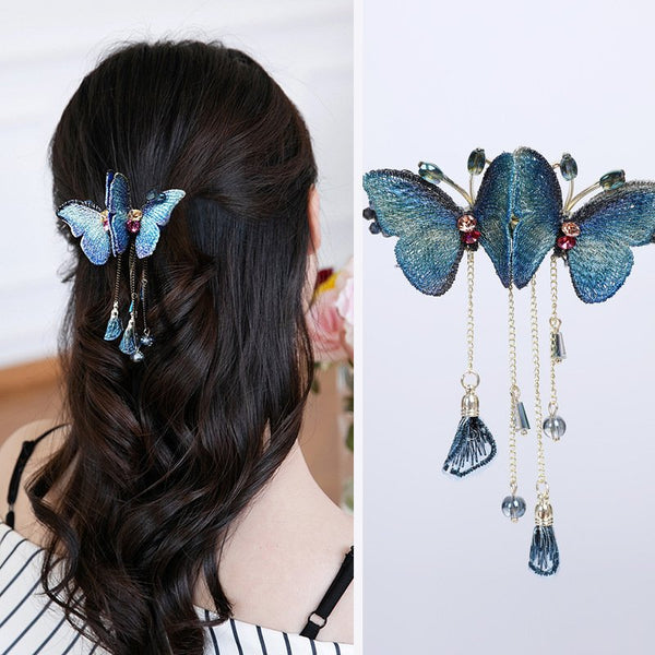 🦋The hair clip is decorated with two butterflies, rhinestones and tassels. The exquisite design makes you the focus of the crowd.