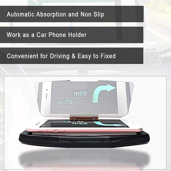 WORK AS A CAR PHONE HOLDER:The head-up display is amazingly designed as a car phone holder. The image reflector has two slits, and the phone can be placed erectly in the slit which can hold the phone steadily