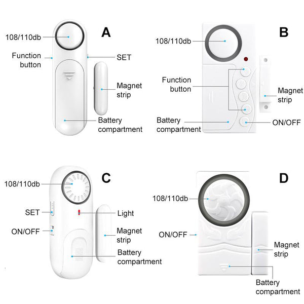 • Window alarm sensors with 4 modes -- Not only on/off setting, but also General Alarm, Constant Alarm, Closing-door Alert (Time Delay) and Doorbell Mode. You can easily set the mode according to your need.