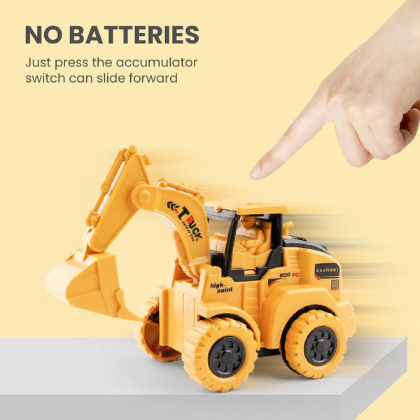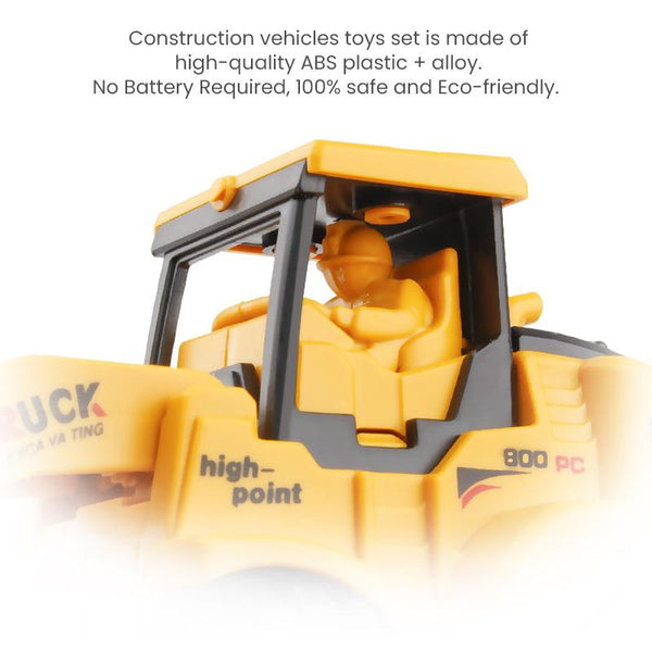 Construction vehicles toys set is made of high-quality ABS plastic + alloy. No Battery Required, 100% safe and Eco-friendly.