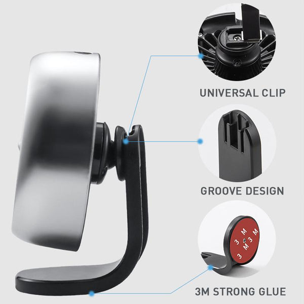 Easy to Install: The fan base can be securely mounted onto all conventional air vent cutter, and it's strong enough to clip and stay put, even on rugged road. Most importantly ,this won't disturb driver’s view to ensure safety driving.