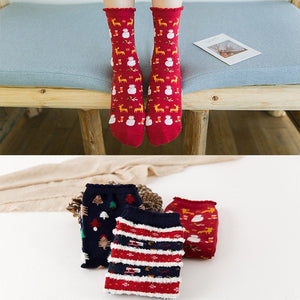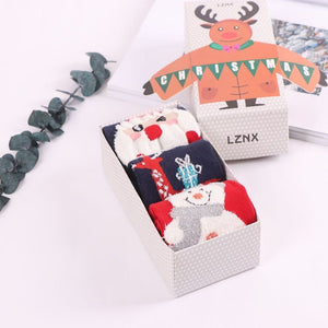3 Pairs of Christmas Cartoon Jacquard Cotton Socks, 3 Sets.