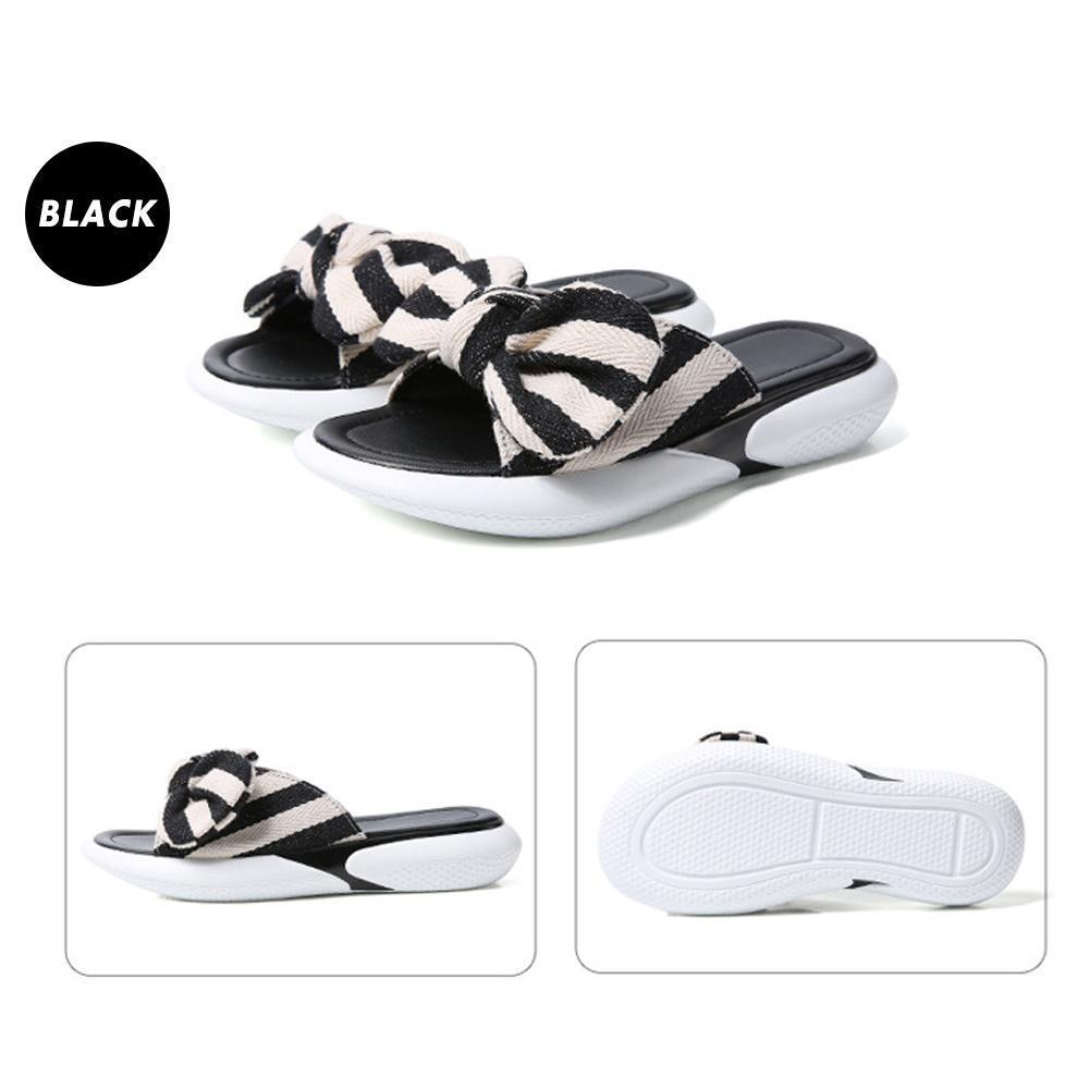 Fashion Open Toe Wedges Bowties Stripe Slides Slippers
