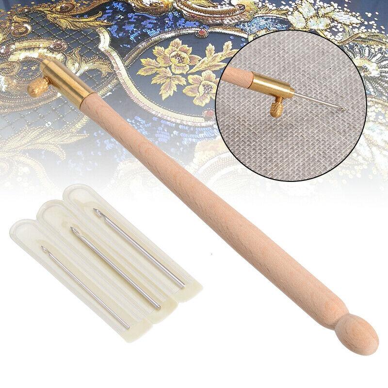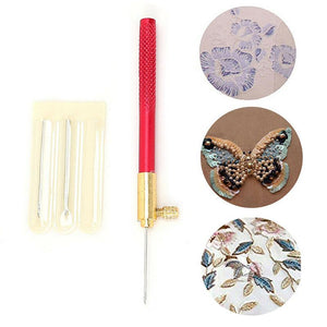 The hook catches the thread on the backside of the fabric, pulling it to the front side to create loops or attach beads or sequins. This contains a flexible crochet needle and 3 types of interchangeable needle. It speeds up your work and more beautiful.