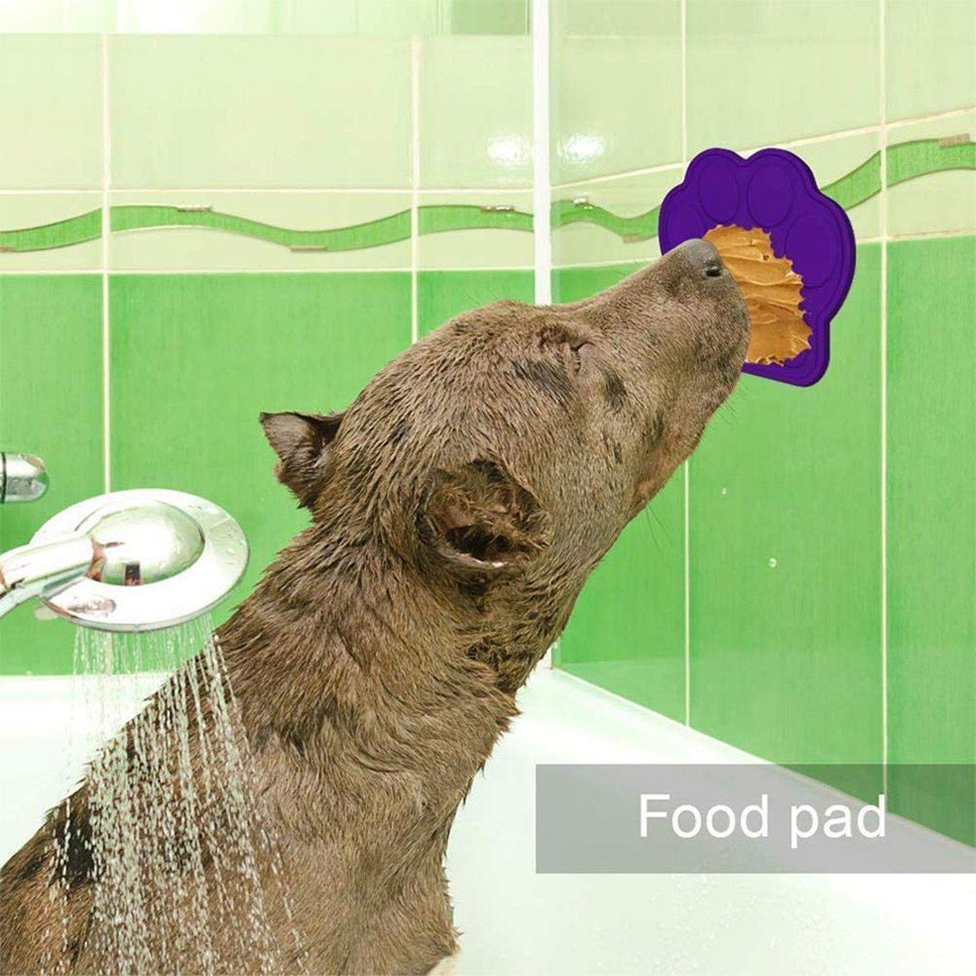 - EASY TO CLEAN: Spread some peanut butter onto the surface of the Hirundo dog bath buddy, then stick it on your tub or shower wall. Just rinse, wipe or use dishwasher to clean the pad after using, the dog lick pad will be easily cleaned, really simple and convenient.