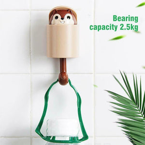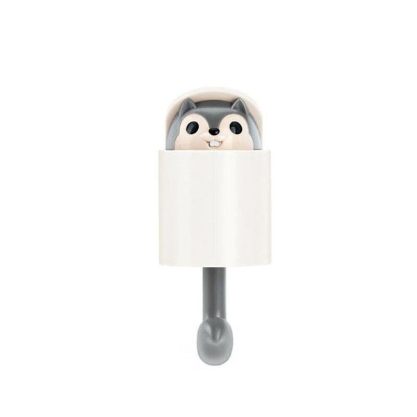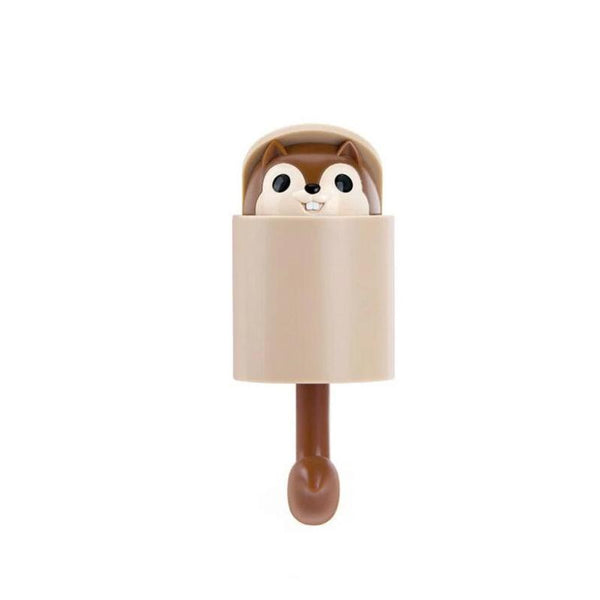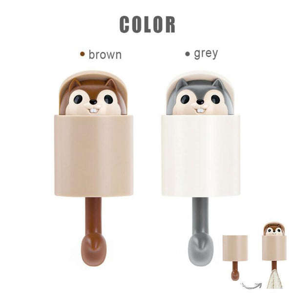 When you hang an item on a hook and pull it down, the squirrel sticks its head out of the box, and when you don't use it, the box automatically closes.Preventing things from leaving the door.