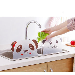 Our Protector Panda prevents you from getting splashed when washing dishes. The panda-shaped splash guard easily attaches to your sink to block your lower torso from soap and water. Use it when washing dishes or produce to stay dry!