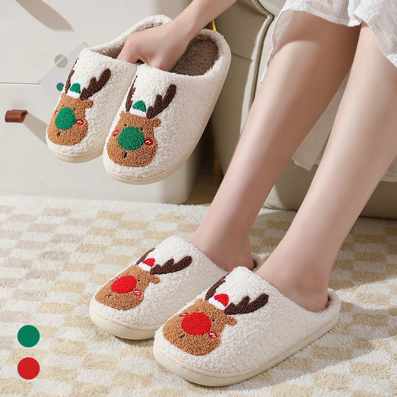 【Comfy & Cute】Christmas Elk Slippers are made of soft plush fabric, warm and comfortable. Cute Christmas Deer will bring you a good mood.