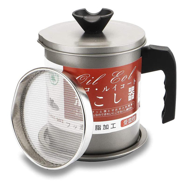 - SAFETY & CONVENIENCE: The design of the safety handle and tray of this food oil filter can effectively prevent burns caused by high temperature oil during use, and it is very convenient to take and store. The stainless steel filter and the main body will not crack or melt, ensuring safety during use.