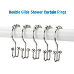 Double hooks design - The double roller glide shower curtain hooks are strong enough to hold up shower curtain and shower liner.