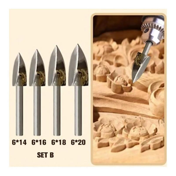 - Set B: 1 Wood Carving & Engraving Drill Bit Set with 4 Drill Bits (14, 16, 18,20 mm)